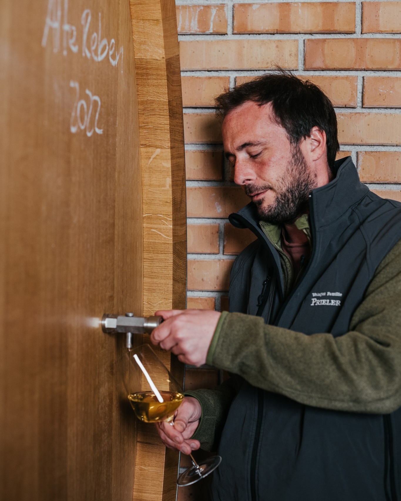 The Prieler family always bases the vinification of its wines on the characteristics of the respective site. Accordingly, the Pinot Blanc Seeberg ferments exclusively in stainless steel tanks after extensive maceration, so that fineness and freshness are preserved. The Blaufränkisch Johanneshöhe, on the other hand, is “schooled” in large wooden barrels. And the very famous Blaufränkisch Goldberg gets its incredible smoothness during its stay of up to 26 months in 500-liter barrels. The latter Blaufränkisch Goldberg is a wine of superlatives, which has already won the “Falstaff Reserve Trophy” twice – in 2005 and 2008.